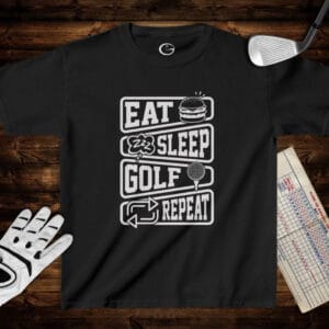 Original price was: $19.99.$15.99Current price is: $15.99.Eat Sleep Golf Repeat Kids T-Shirt