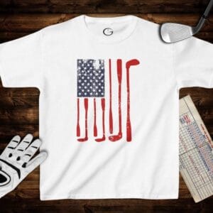 Original price was: $19.99.$15.99Current price is: $15.99.Golf American Flag USA Kids T-Shirt