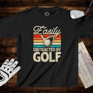 Original price was: $19.99.$15.99Current price is: $15.99.Easily Distracted by Golf Kids T-Shirt