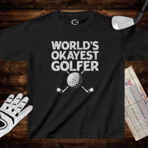 Original price was: $44.99.$35.99Current price is: $35.99.World’s Okayest Golfer T-Shirt