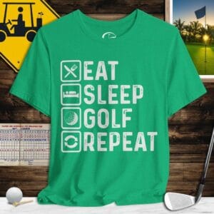 Original price was: $44.99.$35.99Current price is: $35.99.Eat Sleep Golf Repeat T-Shirt